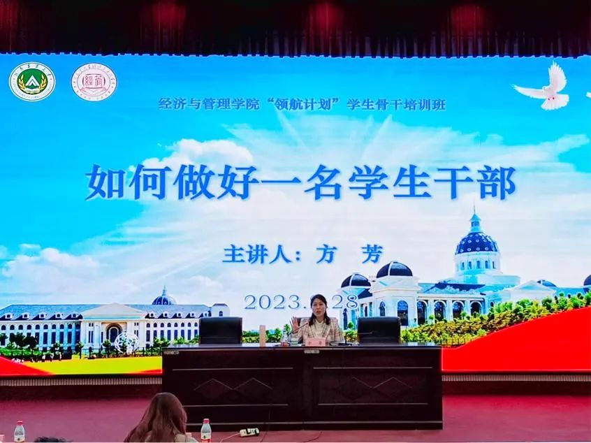 在同学们热烈的掌声中,“领航计划”学生骨干培训班正式开班,由院党委副书记方芳进行专题报告第一讲——“如何做好一名学生干部”。