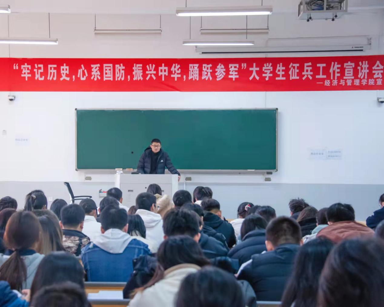于教学楼D106举行“牢记历史,心系国防,振兴中华,踊跃参军”大学生征兵工作宣讲会。本次宣讲会由团委老师余月圆主讲,威尼斯人App
