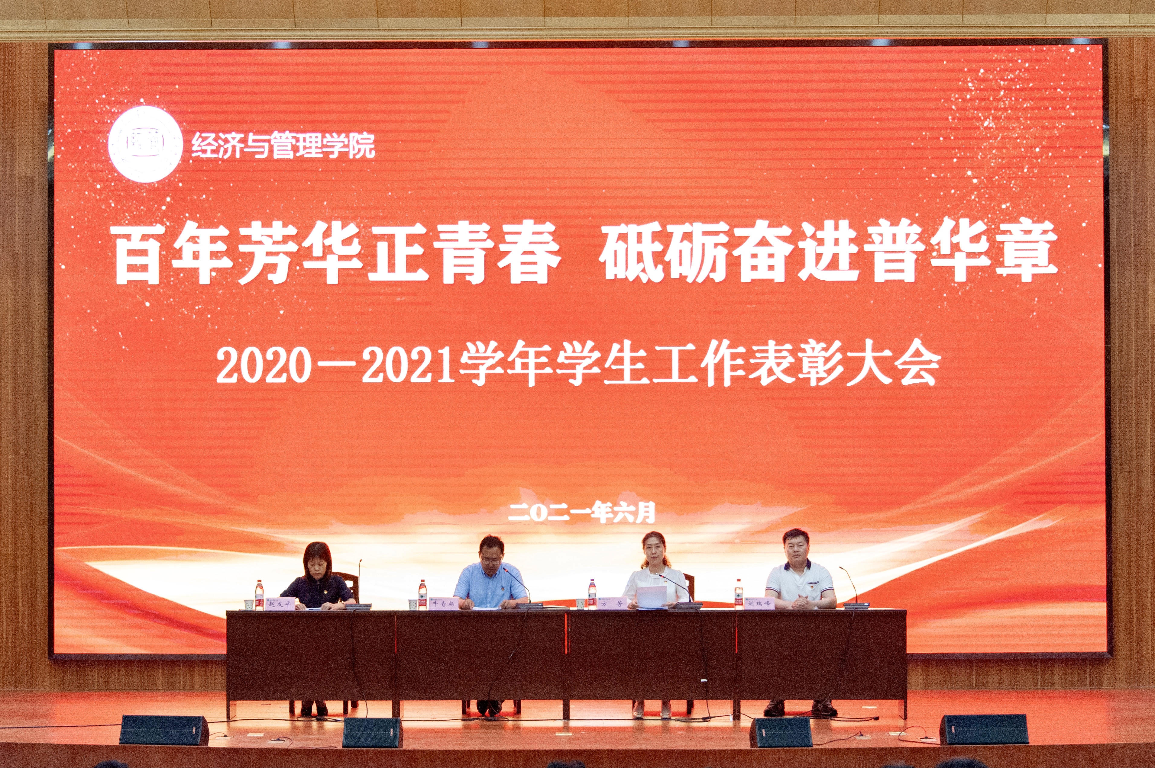 于龙子湖校区图书馆报告厅120举行2020-2021学年学生工作总结表彰大会。院党委书记牛青杨、副院长赵友平、副院长刘瑞峰、院团委书记杨鑫到场及受表彰的300余名师生代表参会。本次表彰大会由院党委副书记方芳主持进行。