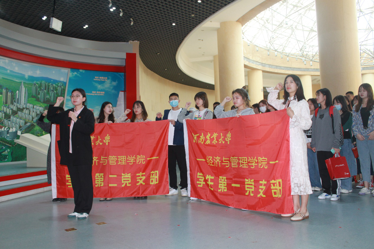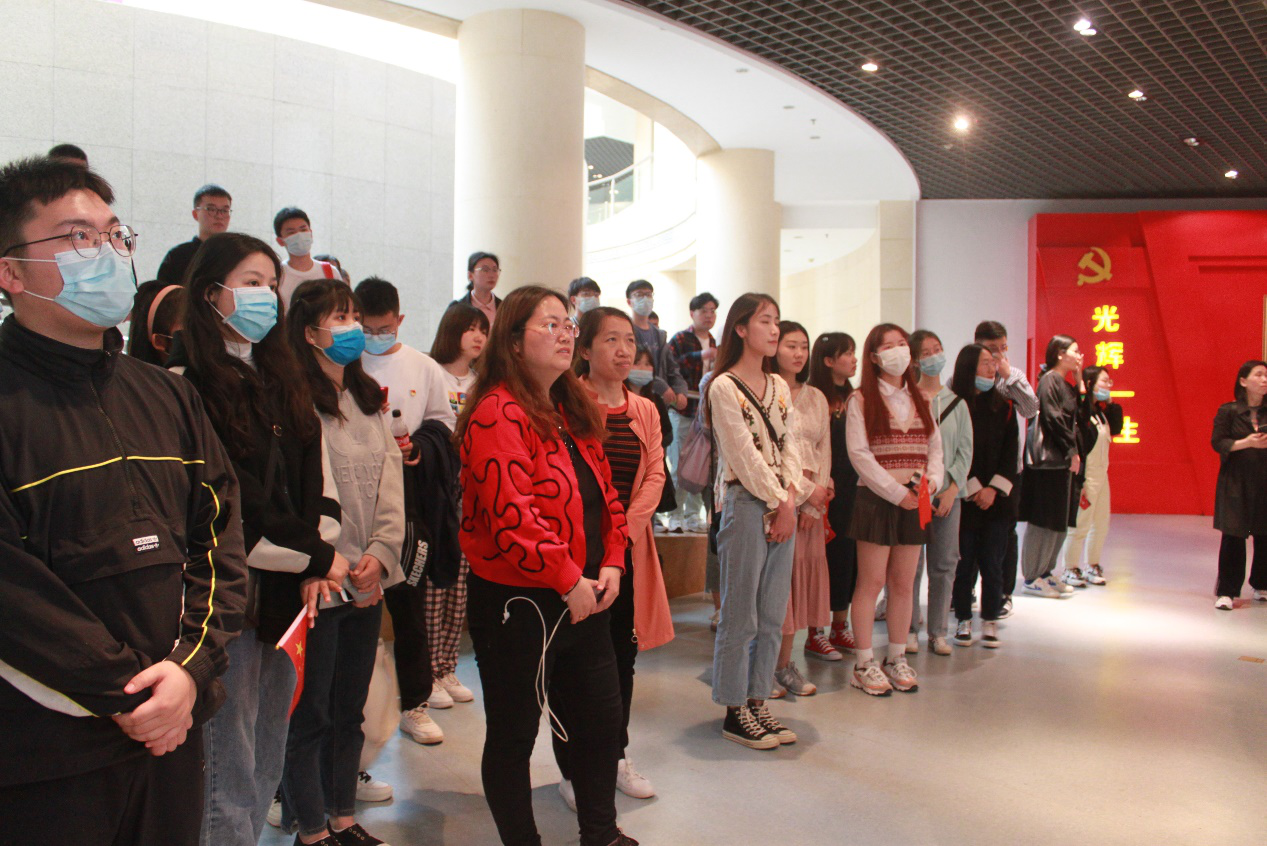 在参观过程中,党员陈咏琪同志热情地向大家讲述了党史小故事,更加深入地了解到史来贺书记坚定的信念和无私奉献的精神。在鲜红的党旗下,以党员陈徐欢同志为领誓人,大家以饱满的精神状态、洪亮的声音重温入党誓词,再次感受入党宣誓时的庄严承诺和坚定决心。