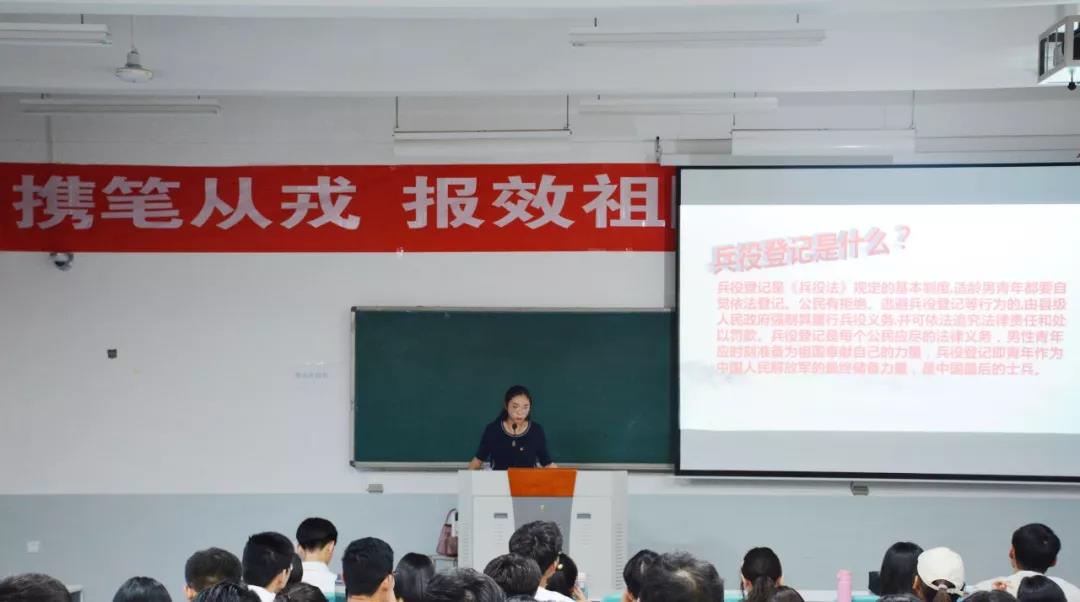 “携笔从戎,报效祖国”大学生应征入伍宣讲会在繁塔楼C302举办。此次宣讲会由院团委副书记黄妍主持,威尼斯人App