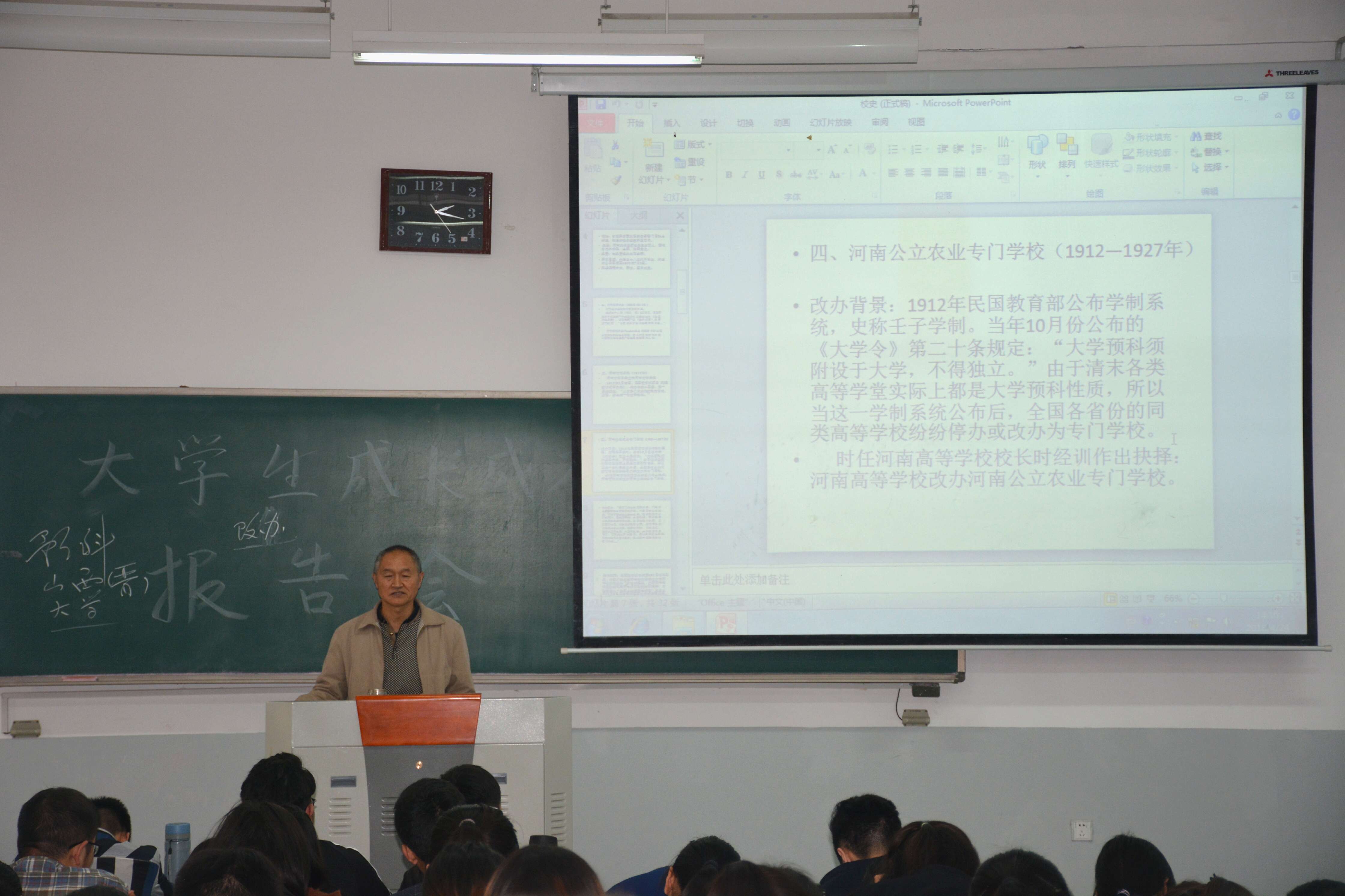 “了解校史,牢记使命,勇于担当,奉献社会”大学生成长成才报告会在繁塔楼C102举办。本次报告会由威尼斯人App