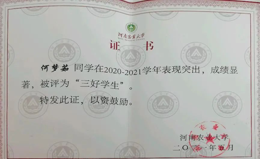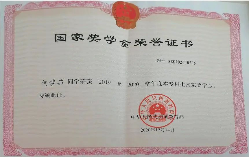 何梦茹始终认为,学习从来不是一时的激情而是长久的积累。自大一入学以来,在学习上她始终保持着一种积极的学习态度。只要一有时间就会待在图书馆,基本只有午休和晚上时才会待在寝室。不积跬步无以千里,不积小流无以成江海,她一直保持着一个良好的习惯,那便是写课堂笔记,她认为只有被写下来的知识才会被记入到自己的脑海中,因此她几乎每一门科目都会准备一个笔记本。大学更需要的是自我管理,一直以来她都会告诉自己努力可能不会有收获,但不努力一定不会有收获。大一、大二学年及大三上半学年她的综合成绩在专业排名第一,荣获了国家奖学金、国家励志奖学金、校级三好学生、院级三好学生等荣誉称号。但她认为努力学习的目的不是为了获得荣誉,而是为了丰富自己,储备专业知识,为考研和以后的工作奠定基础。