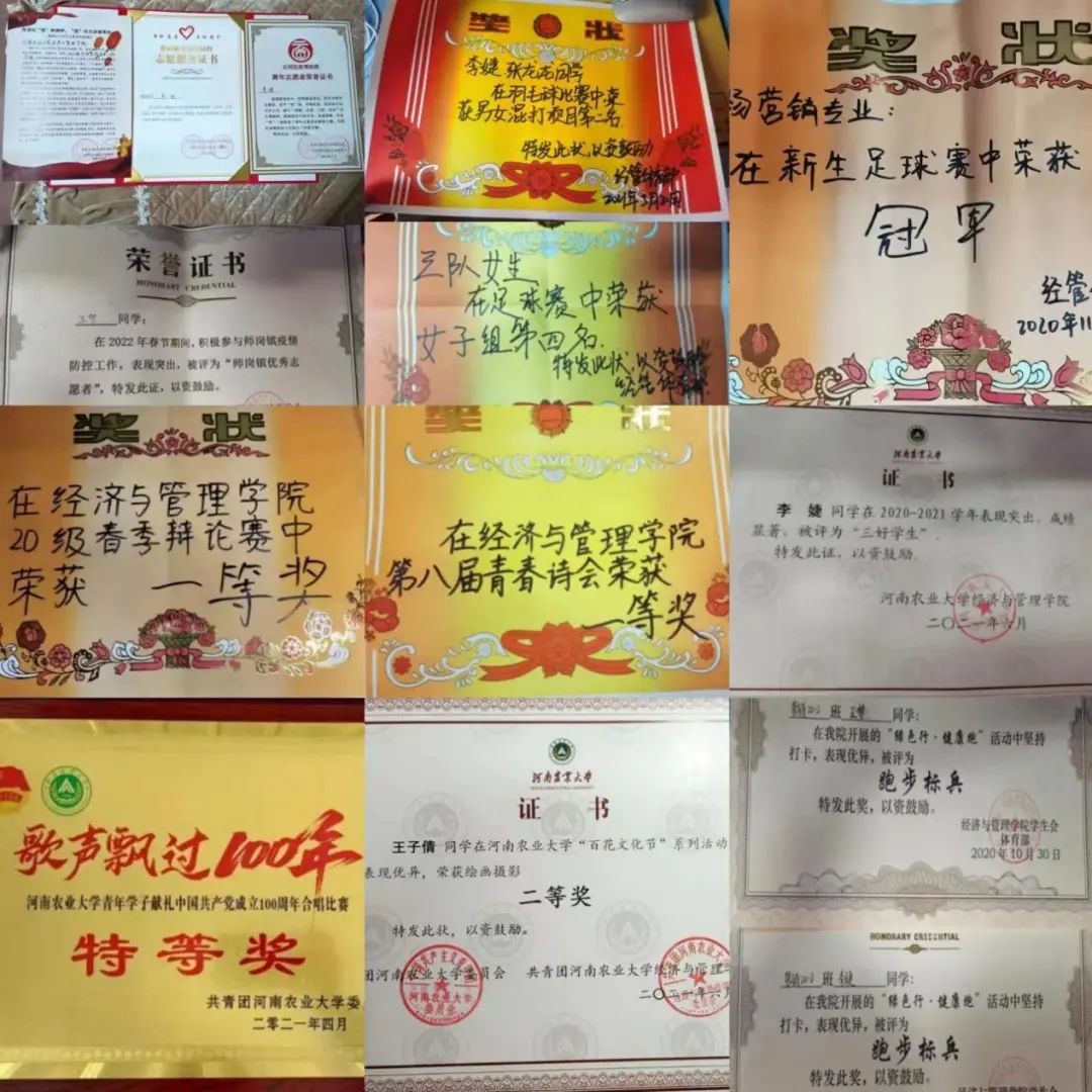 “英语辩论赛”三等奖,“青春诗会”一等奖,“百花文化节”二等奖,辩论赛一等奖,“院级三好学生”。宿舍内部志愿服务精神强烈,个人荣获“抗疫志愿表彰”、“家乡抗疫志愿者表彰”、“迎新志愿者”等。全员积极参加威尼斯人App