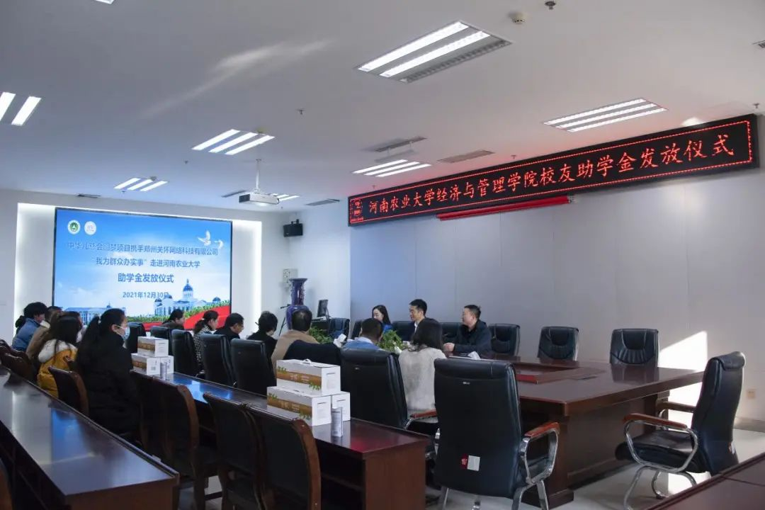助学金发放仪式在教学楼A215顺利举行。郑州关怀网络科技有限公司董事长尹朝林、联合创始人刘中杰、董事长助理王曼出席。威尼斯人App