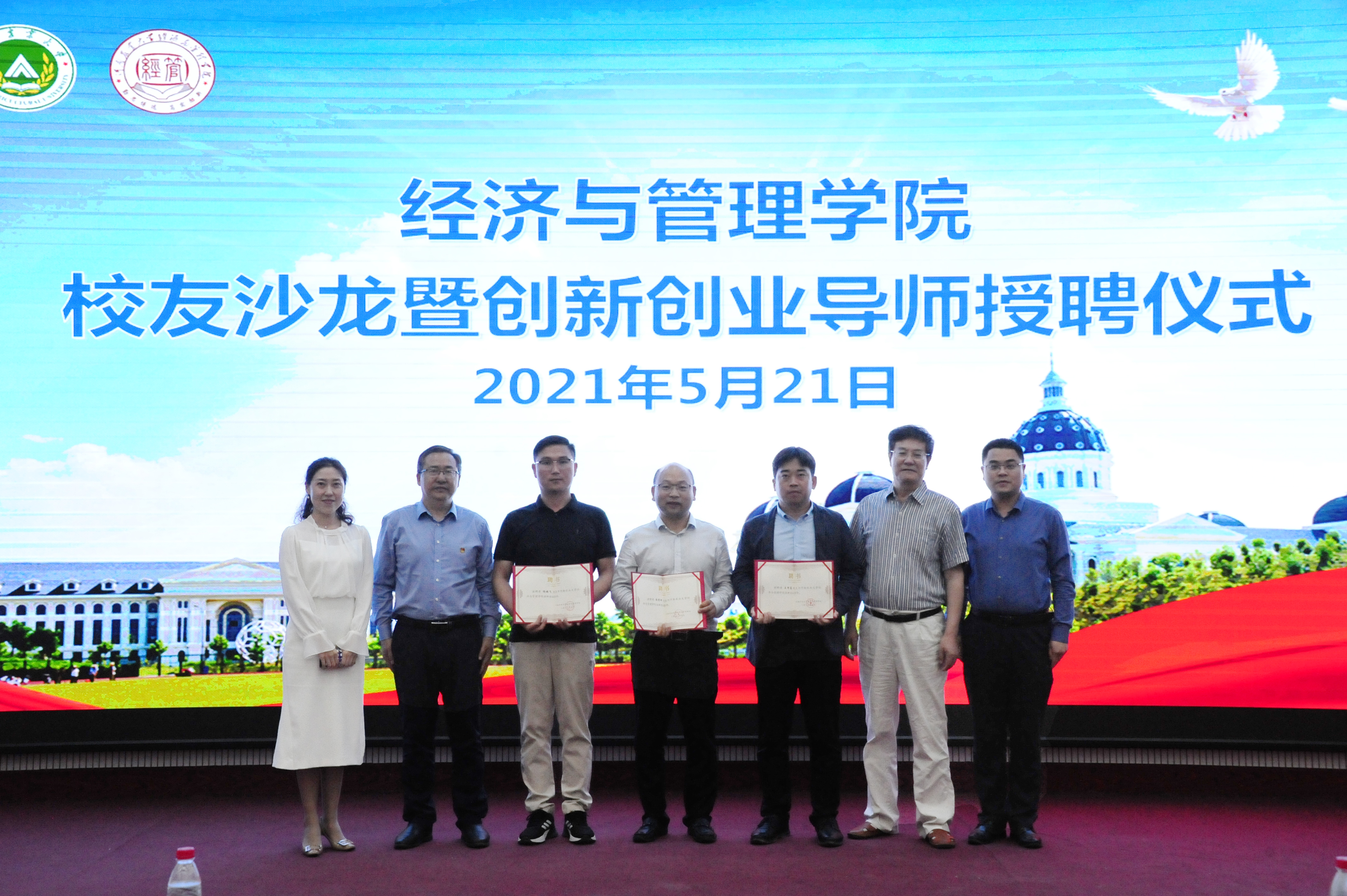 于教学楼AB间大教室1举行校友沙龙暨创新创业导师授聘仪式。特邀06级优秀校友——河南中荷美景温室工程有限公司总经理陈紫帅,08级优秀校友——河南凤彩农业发展有限公司董事长王智豪,09级优秀校友——兰考坤禾农业开发有限公司总经理杨超飞作为主讲嘉宾。院领导班子出席此次活动,本次活动由院团委老师李月主持,威尼斯人App