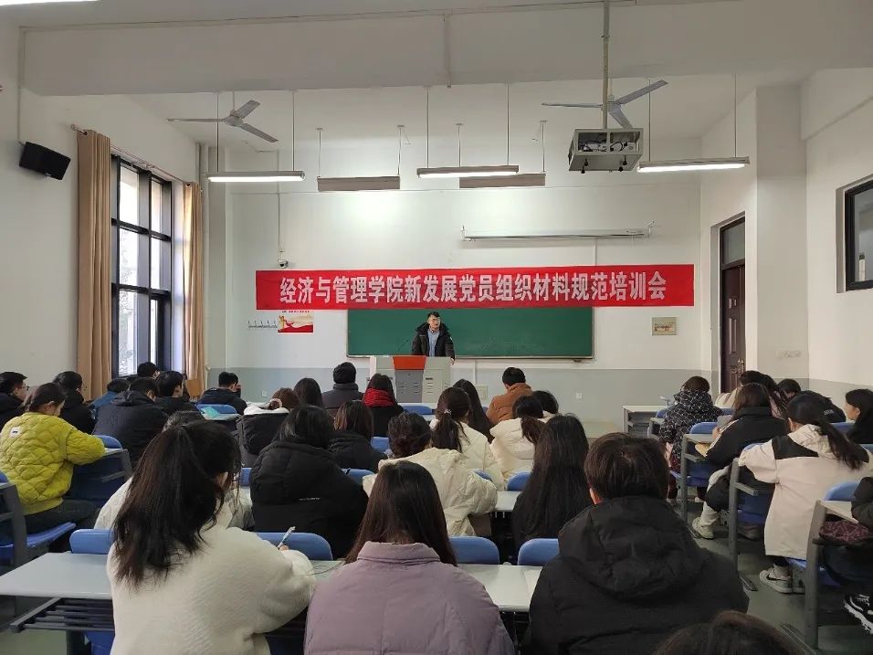 于繁塔楼C105召开新发展党员组织材料规范培训会。院团委书记杨鑫、团委副书记余月圆出席并讲话,新发展党员积极参会。