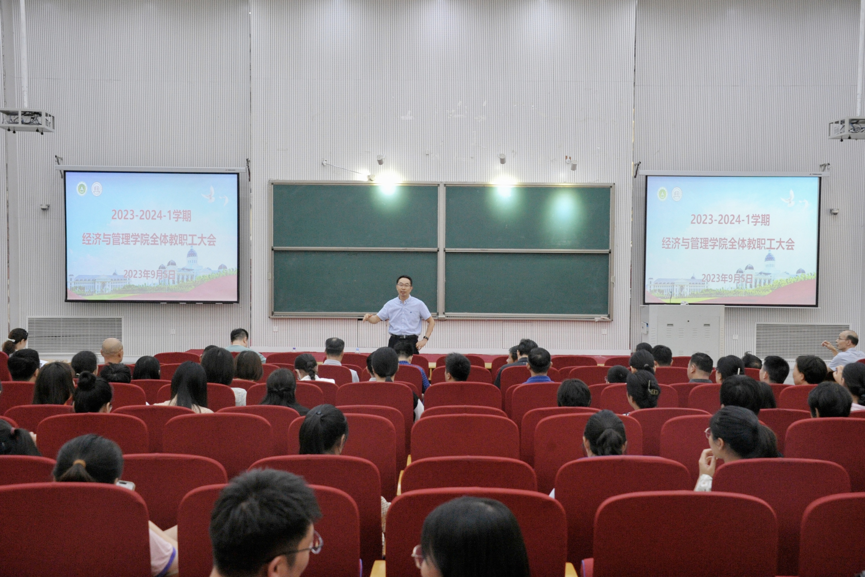 9月5日下午,威尼斯人App 于大教室七召开新学期第一次全体教职工大会。威尼斯人App 领导班子及全体教职工参加会议,会议由院党委书记王宏立主持。