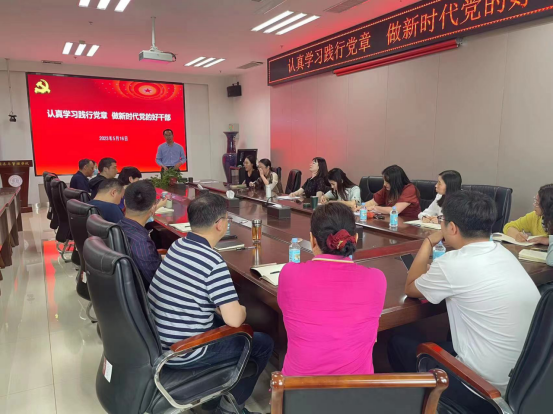 王宏立从党章的地位和作用、现行党章的主要内容、自觉践行党章做合格党员等方面带领全体中层干部深入学习了《党章》的内容,对党的性质,指导思想、纲领、宗旨作了详细介绍,尤其对《党章》第三条党员必须履行的义务、第六条党的干部的六项基本条件进行了细致的解读。