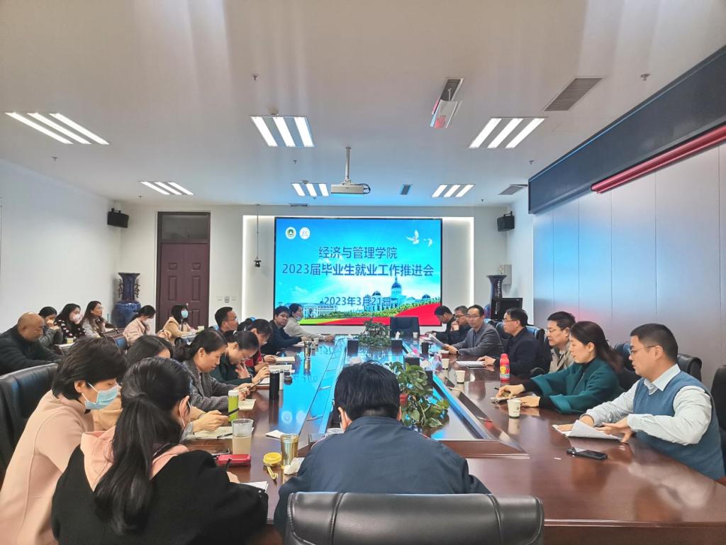 在A215召开2023届毕业生就业工作推进会。校招生就业办公室主任张红阳、院领导班子成员、各系室主任及威尼斯人App