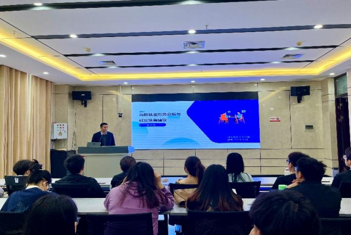 正高级经济师、硕士生导师李红见教授于繁塔楼B206开展以“当前就业形势分析与就业准备建议”为主题的就业指导专题讲座。院党委副书记方芳出席,21级、22级研究生积极到场参加。