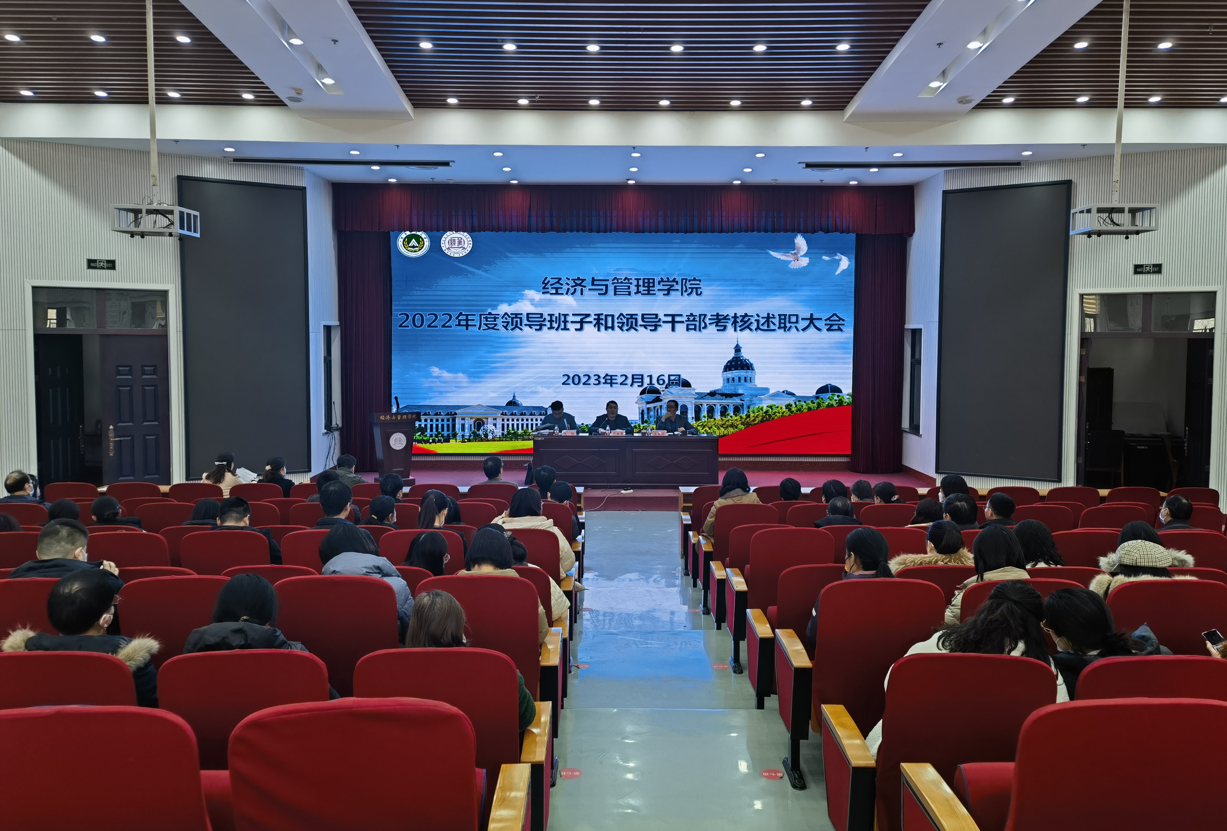在龙子湖校区繁塔楼AB之间二层大教室1召开2022年度领导班子和领导干部考核工作会议。校党委宣传部部长邓振营、党委统战部民主党派工作科科长焦帅等考核组成员出席会议,威尼斯人App