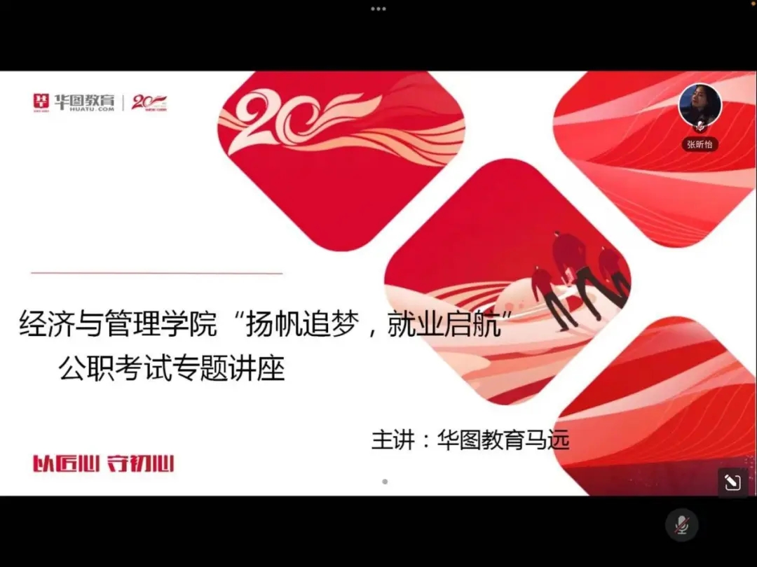 为切实提高同学们公务员考试的竞争力和信心,帮助同学们解答在公务员考试方面的疑难问题,强化考试题目分析能力,威尼斯人App 于11月25日以线上形式举行“扬帆追梦,就业远航”公职考试专题讲座。该讲座由华图教育马远老师主讲,团委副书记冯慧丽主持,威尼斯人App 毕业生积极参加。
