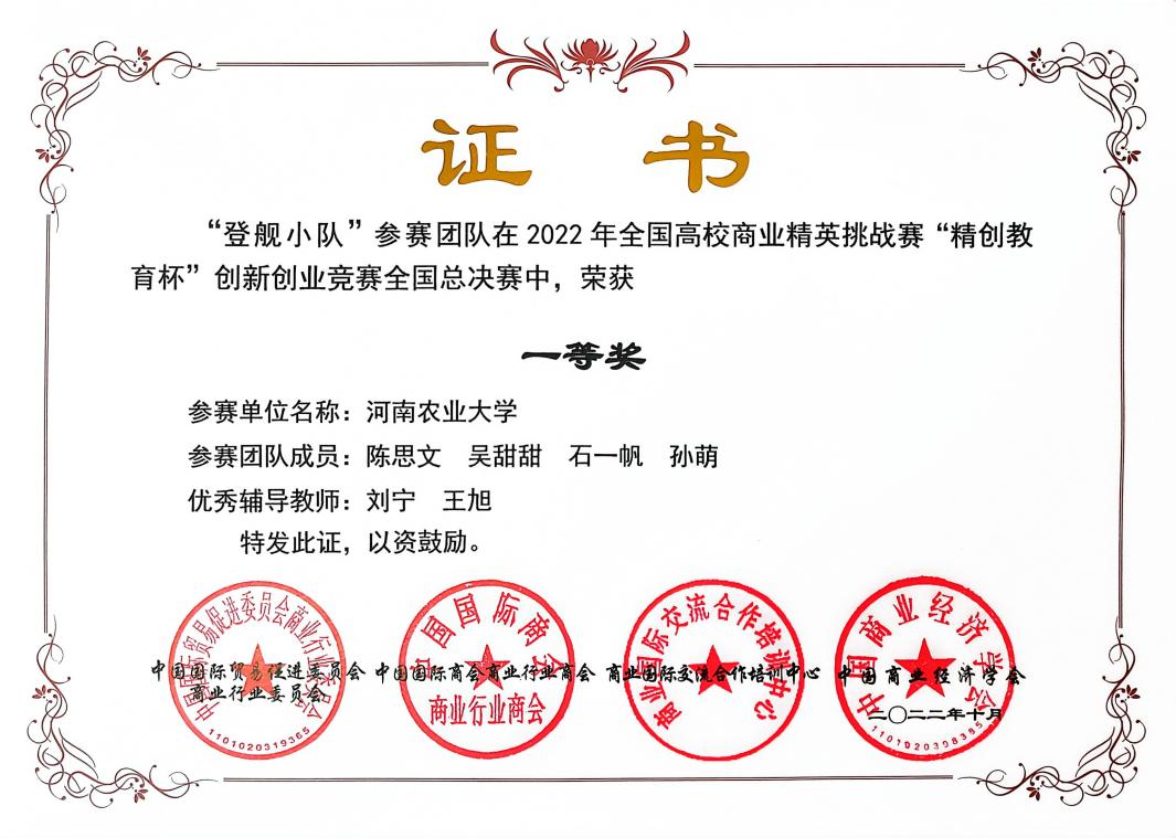 近日,在 2022 年全国高校商业精英挑战赛“精创教育杯”创新创业竞赛中,由威尼斯人App 刘宁老师带领的团队“登舰小队”经过激烈角逐,荣获国赛一等奖。