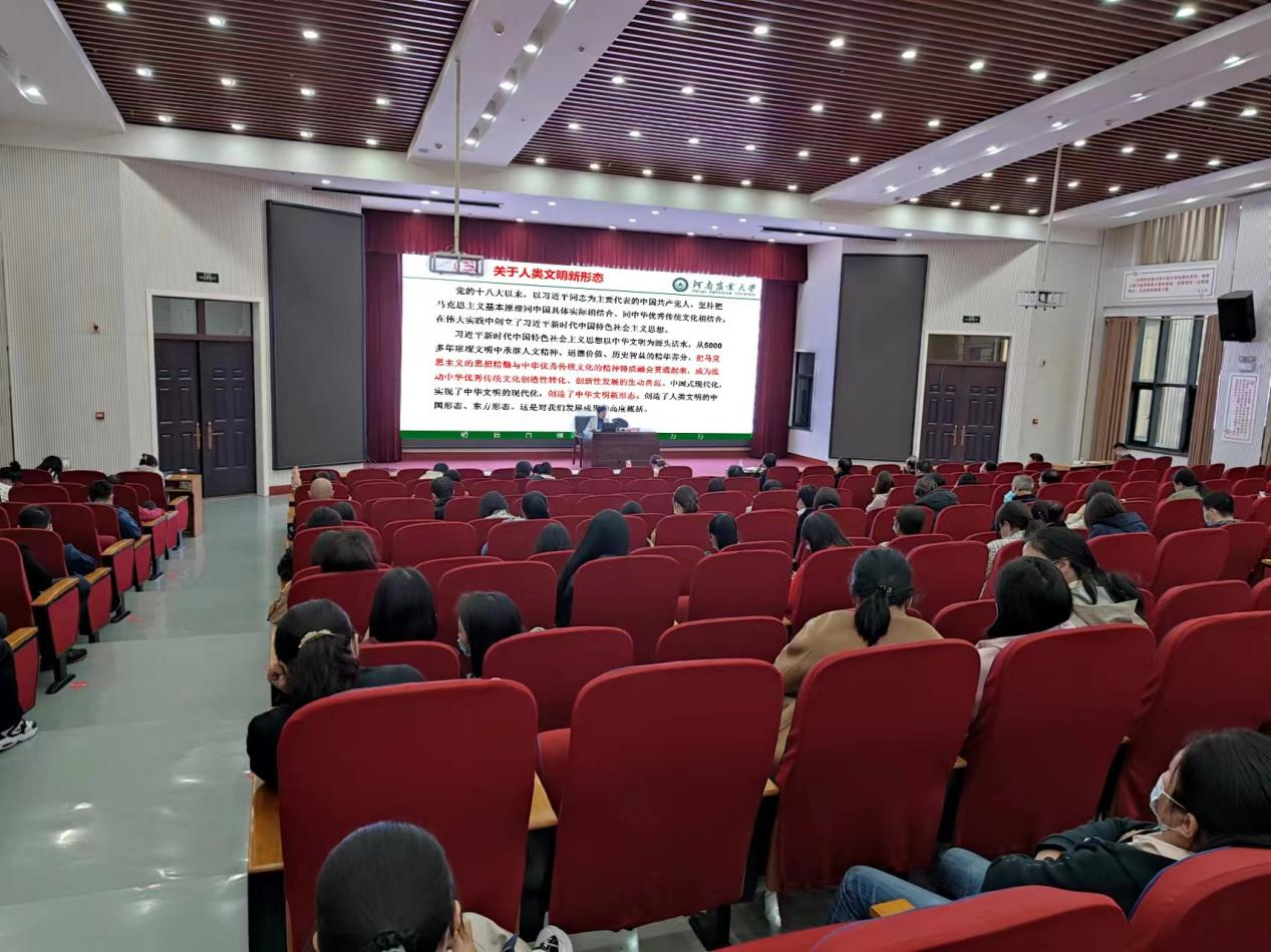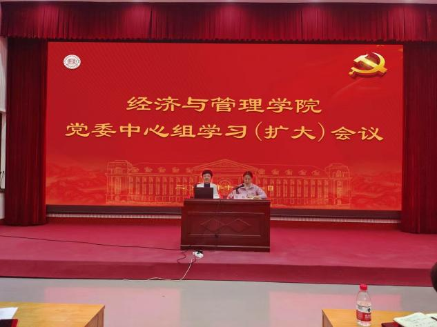 为凝聚思想共识、汇聚奋进力量,10月11日,威尼斯人App 召开党委理论中心组学习(扩大)会议,特邀马克思主义威尼斯人App 教授陈娱讲授马克思主义中国化时代化的最新成果,学习《习近平谈治国理政》第四卷。威尼斯人App 全体教职工参加学习。会议由党委副书记方芳主持。