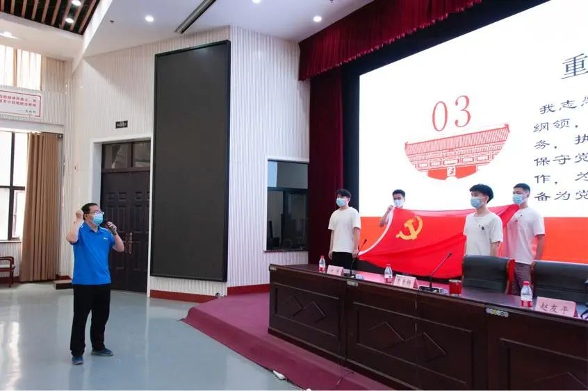 会议伊始,全体师生齐唱国歌,在洪亮的歌声中,此次活动拉开帷幕。首先,院党委书记牛青杨发表讲话,他介绍了此次活动的目的,并对学生提出以下几点希望:一、站稳政治立场。明确“从哪里来,到哪里去”的政治立场,坚持全心全意为人民服务。二、胸怀国之大者。作为青年党员要胸怀民族复兴、国家前途命运、人民幸福的使命和担当。三、锤炼过硬本领。青年党员应当读万卷书、行万里路、交天下友,做到知而行之。四、勇于担当作为。青年党员需立德立功立言,起到示范作用。五、严格要求自己。高站位、观全局、有本事、有作为、严要求,在场毕业生党员对未来发展有了更明确的方向。随后,党委书记牛青杨带领在场老师、学生党员重温入党誓词,在一声声铿锵有力、掷地有声的宣誓之后,牛青杨进一步强调要坚守初心、对党忠诚、不负人民。接着,全体领导老师与2022届毕业生党员共过政治生日,手写毕业寄语卡片,送上祝福与嘱托。会上,毕业生党员还共同观看了红色电影,大家在曲折坎坷、振奋人心的电影情节中,重温红色经典,激荡家国情怀,进一步坚定了要将爱国精神融入学习生活,将青春奋斗融入党和人民事业的决心。