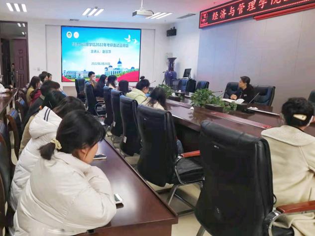 在教学楼A215举办2022年考研面试咨询会。本次会议由副院长赵翠萍主讲,部分学生积极到场参加。