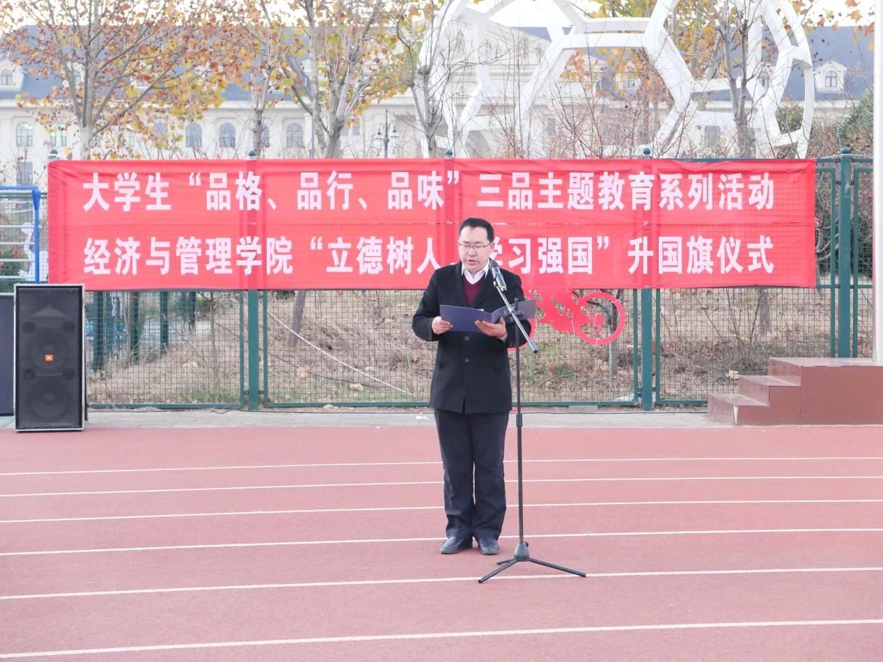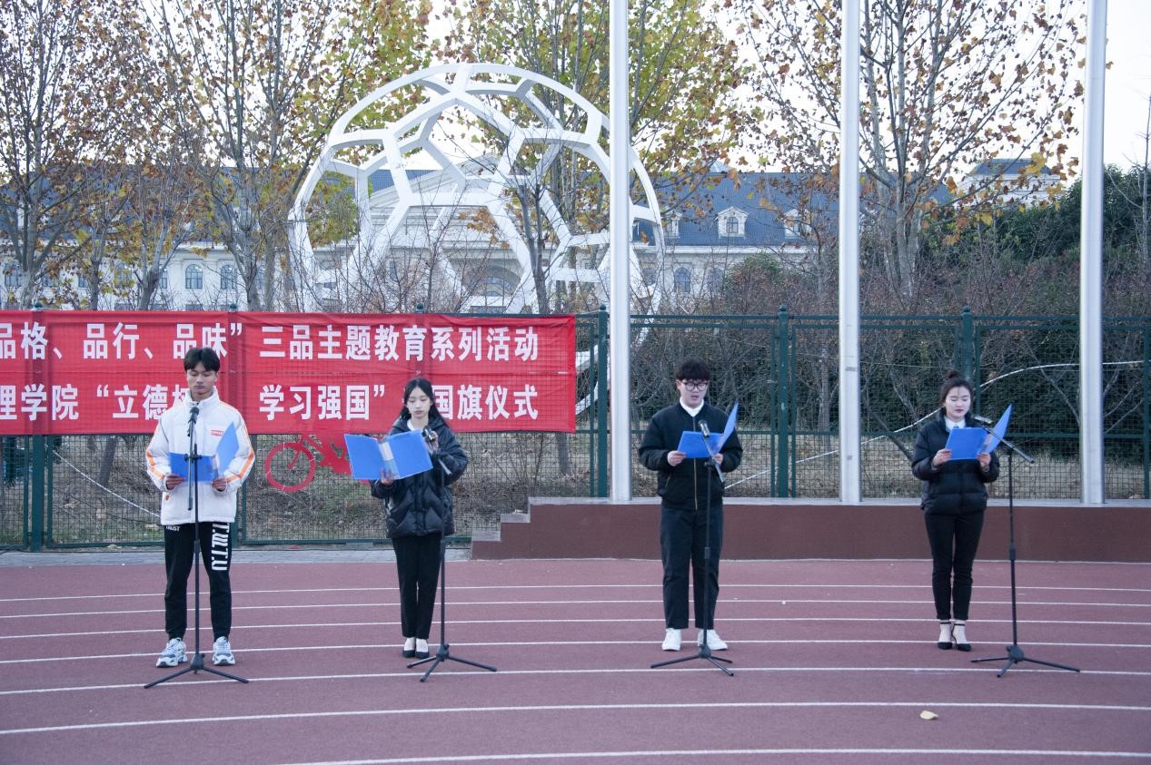 围绕大学生“品格、品行、品位”三品主题教育活动,在龙子湖校区操场隆重举行了以“立德树人,学习强国”为主题的升国旗仪式。院党委书记牛青杨、院党委副书记方芳、副院长赵翠萍、副院长刘瑞峰和全体团委老师出席此次升旗仪式。本次升旗仪式由院党委副书记方芳主持。