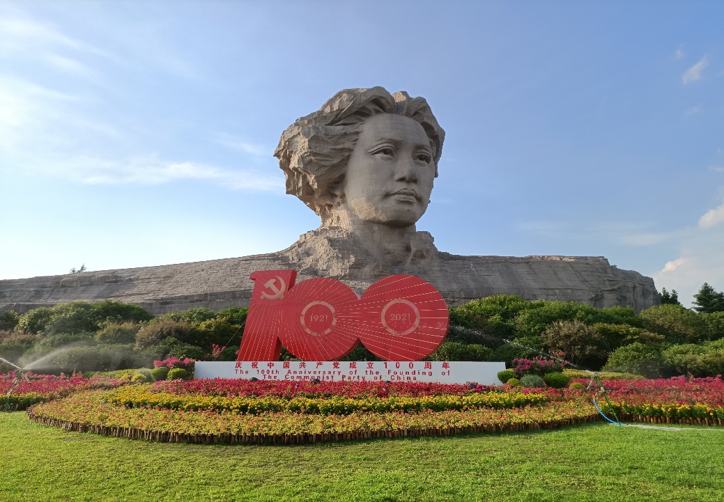 就读,当时的毛泽东为寻找救国救民真理,经常与同学游过湘江,到橘子洲头开展各类活动,经常站在橘子洲头思考改变旧世界,建立新中国。后来,毛泽东的愿望终于变成了现实。建问天台,就是来自这个缘由。湘江水汩汩不息,江风早已把硝烟吹散,山河也已是巨变。曾经依靠船渡出行的橘子洲先后进入了大桥时代、地铁时代,面积也扩大了六七倍,成为了这座城市里人来人往的地标。但踏上橘子洲,青年毛泽东艺术雕塑向东南而立,头发迎风扬起,正如长沙在滚滚潮流中独立思考前行的城市姿态,诗词碑、指点江山石、问天台,鲜明标志仍旧牵连百年,这片土地上的红色印记从来不曾褪去。