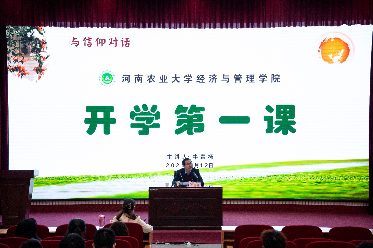 于教学楼大教室一开展“开学第一课”活动。此次活动由院党委书记牛青杨主讲,院党委副书记方芳主持,院团委老师、党员、学生干部积极到场参加。