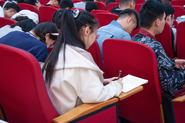 影片结束后,在场同学纷纷交流观看心得体会,并写下观后感。