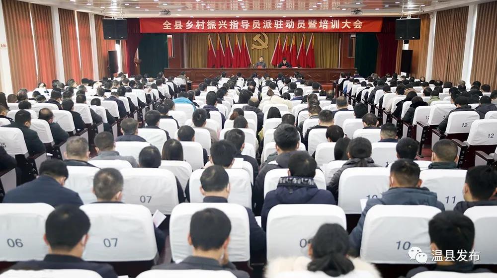 2月19日,温县乡村振兴指导员派驻动员暨培训大会召开。县委书记毛文明出席会议并作动员讲话,县委副书记、县长李培华主持会议。县领导李备战、胡义胜、郑爱珍、朱保平、陈宁、孙启卫、王咏生、任红星、史玉龙等出席会议。