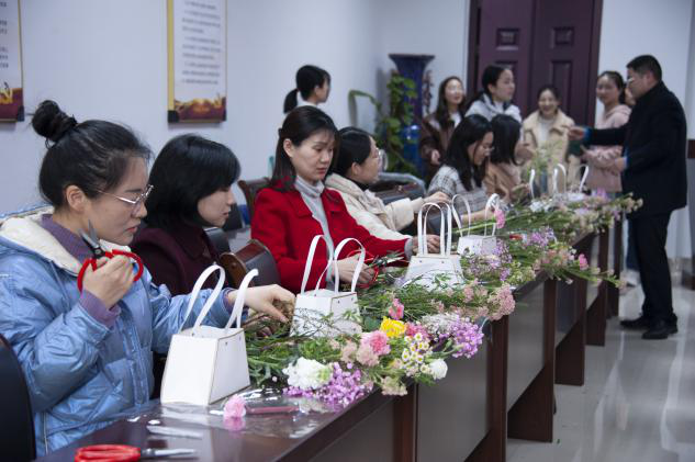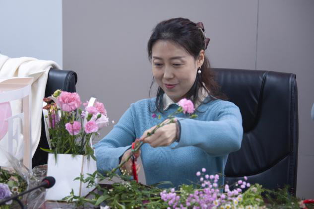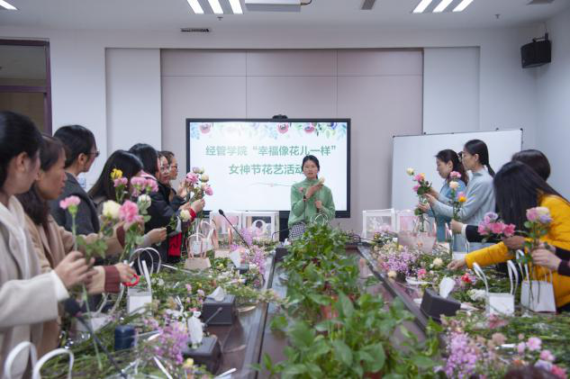 于龙子湖校区教学楼A215举办“幸福像花儿一样”女神节花艺活动。威尼斯人App