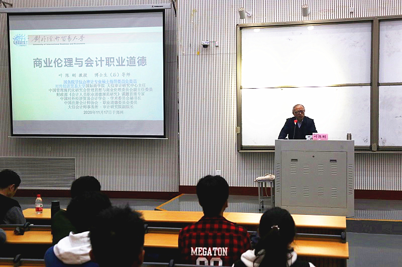 叶教授首先从中国优秀传统文化入题,引用原国务院总理朱镕基提出的“诚信为本,不做假账”和习近平总书记提出的“不忘初心”,对商业伦理和社会道德的本质根源进行了高屋建瓴的论述。通过对在当前社会和商业领域的非道德行为,如对“康美药业、康得新、辅仁药业”等财务造假案例的分析,让同学们直观地感受作为财会人士遵守商业伦理与职业道德的重要性,并系统地阐述了会计与审计职业道德规范的思想体系与架构,强调了商业伦理关键在于知行合一,贵在力行。最后,叶教授对同学们提出殷切期望,强调看不见的精神比看得见的物质更重要,道德比知识更重要,忠诚比技术更重要,诚信比才能更重要,智慧比聪明更重要,做人比做事更重要。