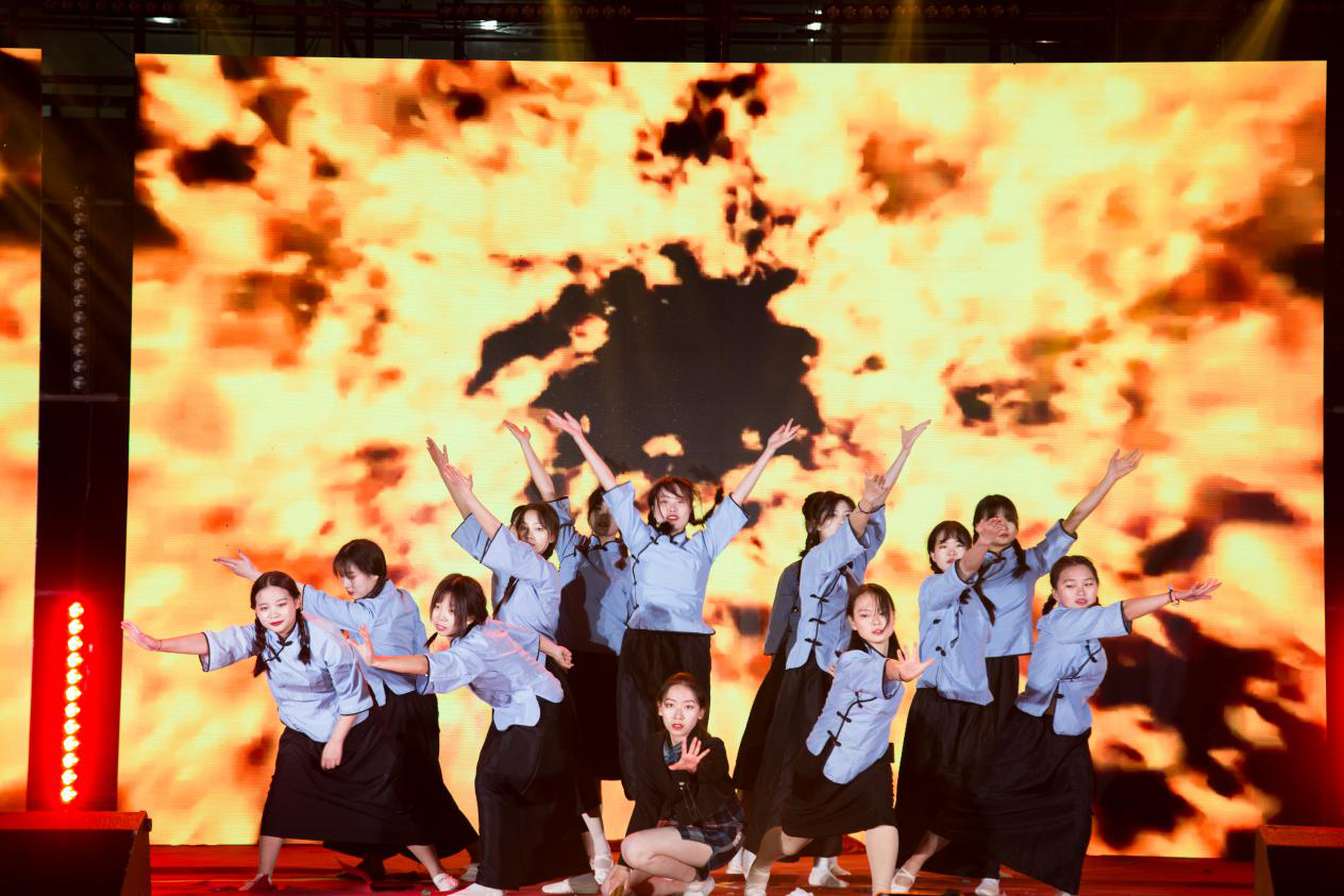 在比赛现场,同学们以翩翩舞姿,抒家国情怀、展青春芳华、扬奋斗之志,《抗疫中国—致敬最可爱的人》通过舞蹈致敬在新冠疫情中敢于牺牲,不畏艰险的医护人员们;《奋青春长歌,与时代共舞》表现新一代青年敢为人先、砥砺奋斗的决心;《五谷配咖喱,光盘要努力》主题鲜明,宣扬了勤俭节约、量入为出的消费理念……优美有力的舞姿结合气势磅礴的音乐和灯光,引发了全场师生的强烈共鸣。一幕幕精彩的演出,展现了中国大学生“使命在肩”的社会责任感和“奋斗有我”的理想担当,舞出了青春脉搏,奏响了时代强音。