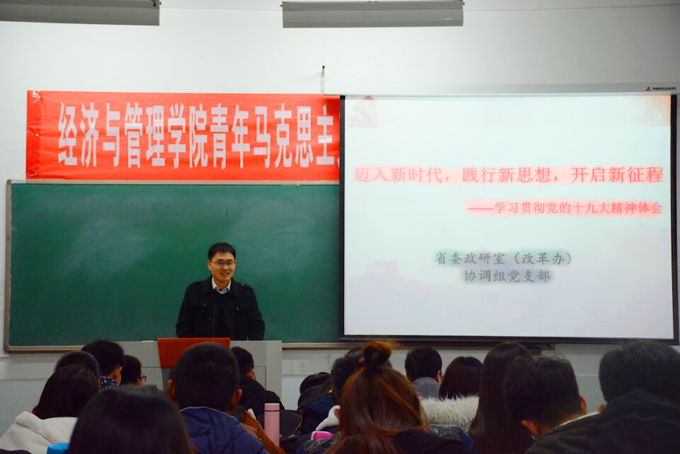 院团委书记王金铎给学员们讲解了举办青年马克思主义者培养工程的意义和初衷,他要求学员们珍惜培训机会,努力提升个人政治水平和理论素养,在新时代积极发挥标杆和榜样示范作用。优秀校友殷东辉以“迈入新时代,践行新思想,开启新征程”同大家分享了学习十九大报告的体会。他首先通过图表的方式向学员们讲述了中国过去五年取得的辉煌成就并为学员们解读了新时代、新思想、新征程。随后他通过河南省的多项改革举措对习近平新时代中国特色社会主义思想做了全面的阐释,最后,他向各位学员就如何学好,弄通、做实十九大报告精神提出了个人建议。辅导报告深入浅出,互动性强,受到学员一致好评。
