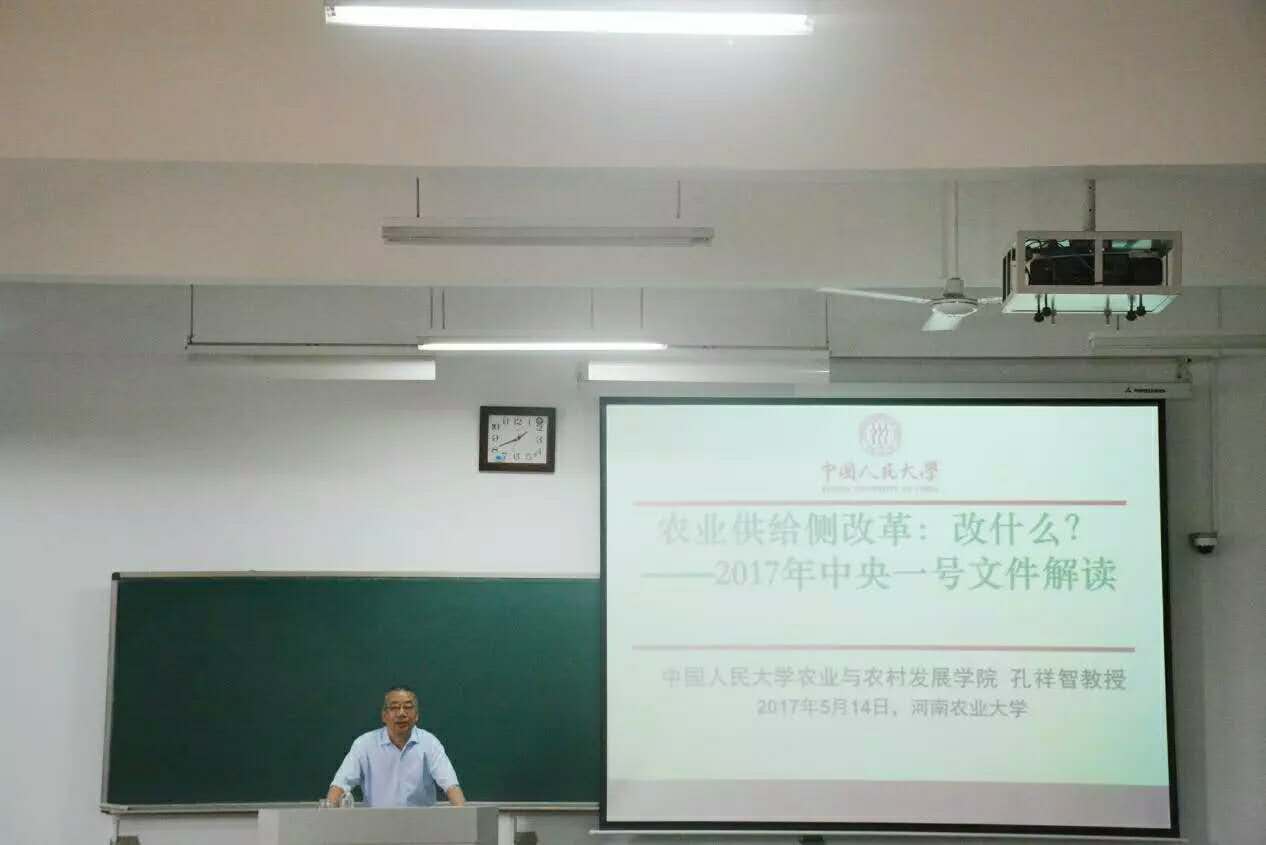 5月14日,中国人民大学博士生导师孔祥智教授于繁塔楼D202教室为威尼斯人App 师生作了题为“农业供给侧改革:改什么?—2017年中央一号文件解读”的学术报告。报告会由赵翠萍副院长主持,威尼斯人App 部分老师、全部研究生以及部分本科生参加报告会。