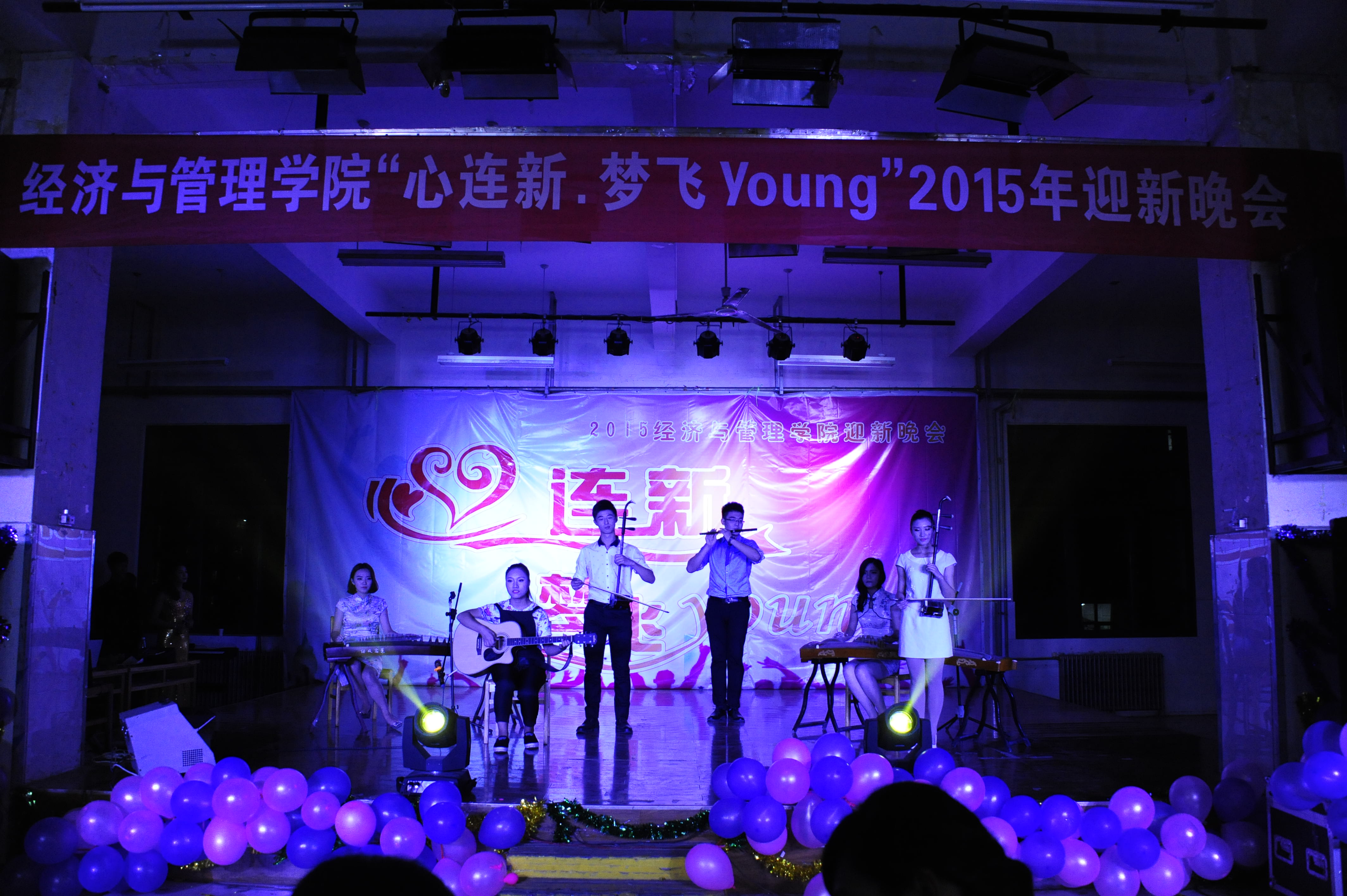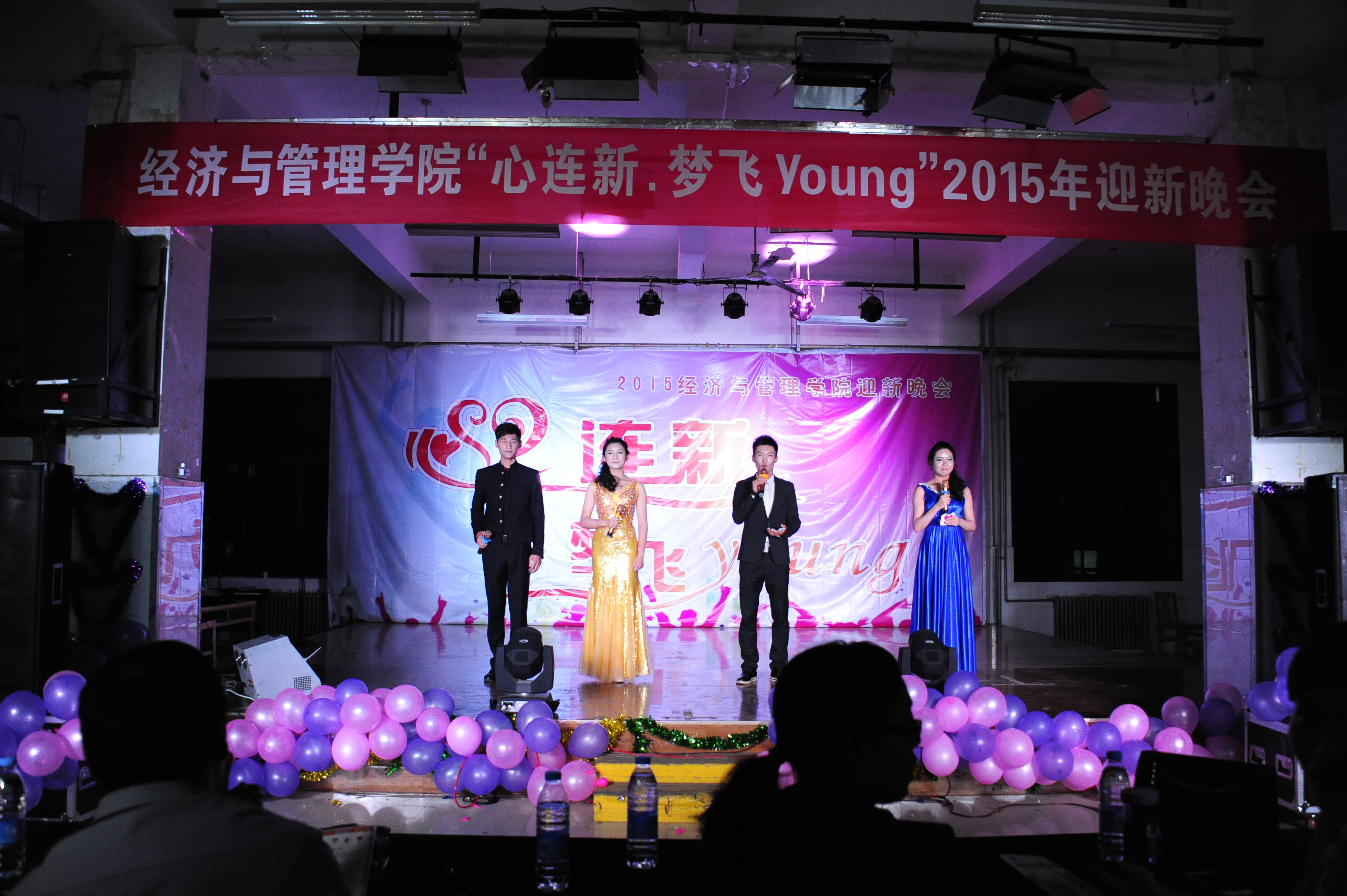 “心连新 梦飞Young”2015年迎新晚会在龙子湖校区餐厅三楼举行。院团委书记郭娟、副书记王金铎、辅导员张倩、黄妍、张嫄嫄及2015级新生参加此次迎新晚会。