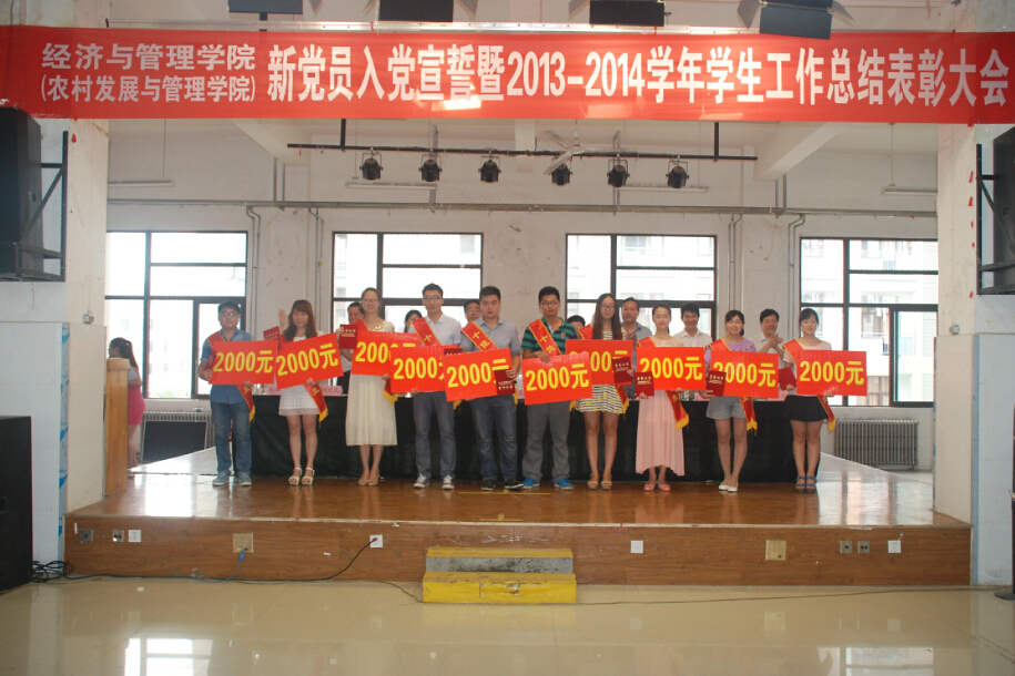 关于表彰先进党支部、优秀共产党员的决定》;副院长赵翠萍宣读了《关于表彰首届“励新杯”大学生学术论文竞赛获奖作品的决定》和《关于表彰2013——2014学年学风建设先进集体的决定》;副院长唐华仓宣读了《关于表彰第十二届“创新杯”创业计划竞赛获奖作品的决定》和《关于表彰2013——2014学年优秀研究生的决定》;副院长杨宪民宣读了《关于表彰2013——2014学年先进集体和先进个人的决定》和《关于表彰2013——2014学年“十佳运动员”和“优秀运动员”的决定》。信息管理与信息系统11级2班孙意青、经济学11级3班潘亚茹作为先进集体和先进个人代表分别做了发言。在欢快的音乐中,与会领导为获奖集体及个人颁发了奖金及证书。
