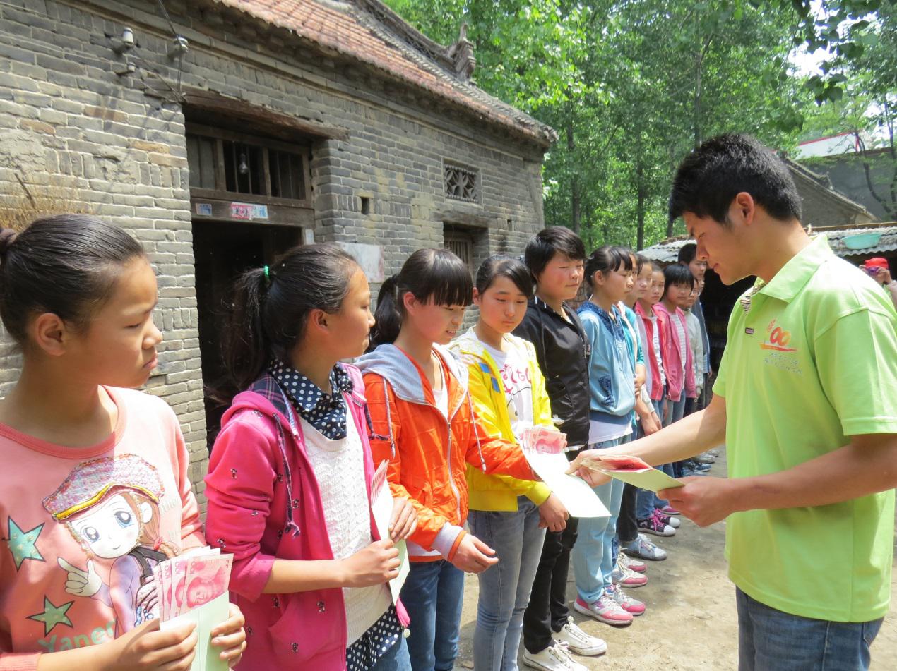 2014年5月8日威尼斯人App 青年志愿者协会为期半年的夏雨手拉手活动接近尾声。带着半年来的努力志愿者们来到舞阳县,将活动募捐的物资亲手送到辛安一中的13位孩子手中