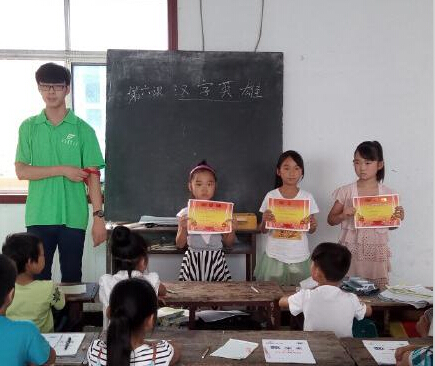 为期十天的支教活动,支教组的小伙伴们认真备课,早早地做好了教学计划安排。队员们开展了丰富的教学内容,如:汉字课、环保课、手工课等。汉字课上,团队以比赛的形式教孩子们识字、练字,并举行了首届康城村小学汉字听写大会,为表现良好的同学颁发奖状。为了让孩子们懂得环保的重要性,队员为孩子们宣讲环保知识,提醒同学们洗完手记得关闭水龙头,旧练习本用完后装订起来当作演草本,这些看似微小的举动却产生着深远的影响。手工课上老师教大家叠纸鹤、帽子、爱心等,令老师感动的是,孩子们不仅学会叠纸鹤、爱心,还在卡纸上写下对老师的感谢和祝福。点滴付出换来的是满满的回报,队员们认为一切都是值得的。
