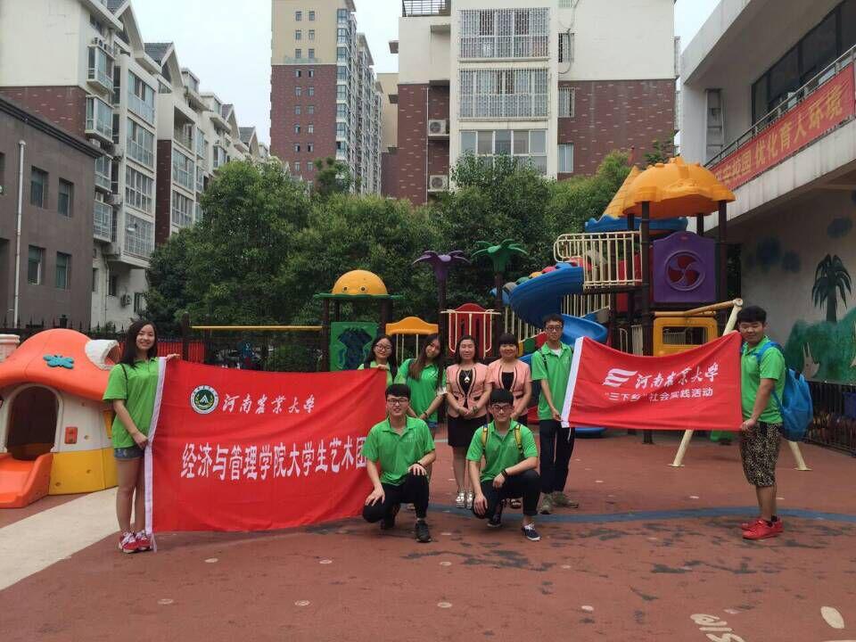 少年儿童是祖国的未来和希望,社会主义核心价值观的宣传也要从小朋友做起。经过商议,社会实践团队于7月3日来到宣讲第一站——荥阳市幼儿园。队员们按照前期计划为两组开展活动。两组队员分别针对不同班级、不同年龄段的小朋友的特点准备了歌曲表演、舞蹈教学、儿歌教学等内容。随后,队员们与小朋友们在在操场上进行户外活动。短短几个小时的接触时间转眼即逝,队员们和小朋友们建立起深厚的友谊,尽管他们的调皮有时会令队员们不知所措,但是小朋友们的真诚、友善与纯真令队员们沉醉其中,他们深深地喜欢上了这群可爱的孩子们。这次活动给大家带来了不一样的体验,带来了一段难忘的时光,在向小朋友们宣扬社会主义核心价值观的同时,队员们也通过他们对核心价值观的内容有了新的认识。活动最后,队员们与小朋友们合影留念。