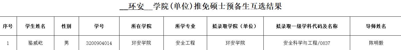 推免硕士预备生互选结果: