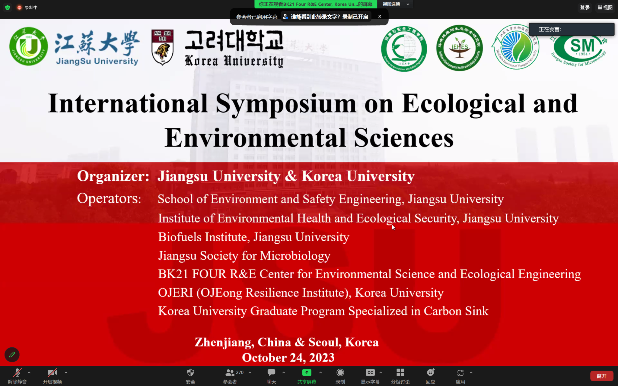 与韩国高丽大学联合主办的《生态与环境科学国际研讨会》在Zoom线上会议平台顺利召开。威尼斯人app