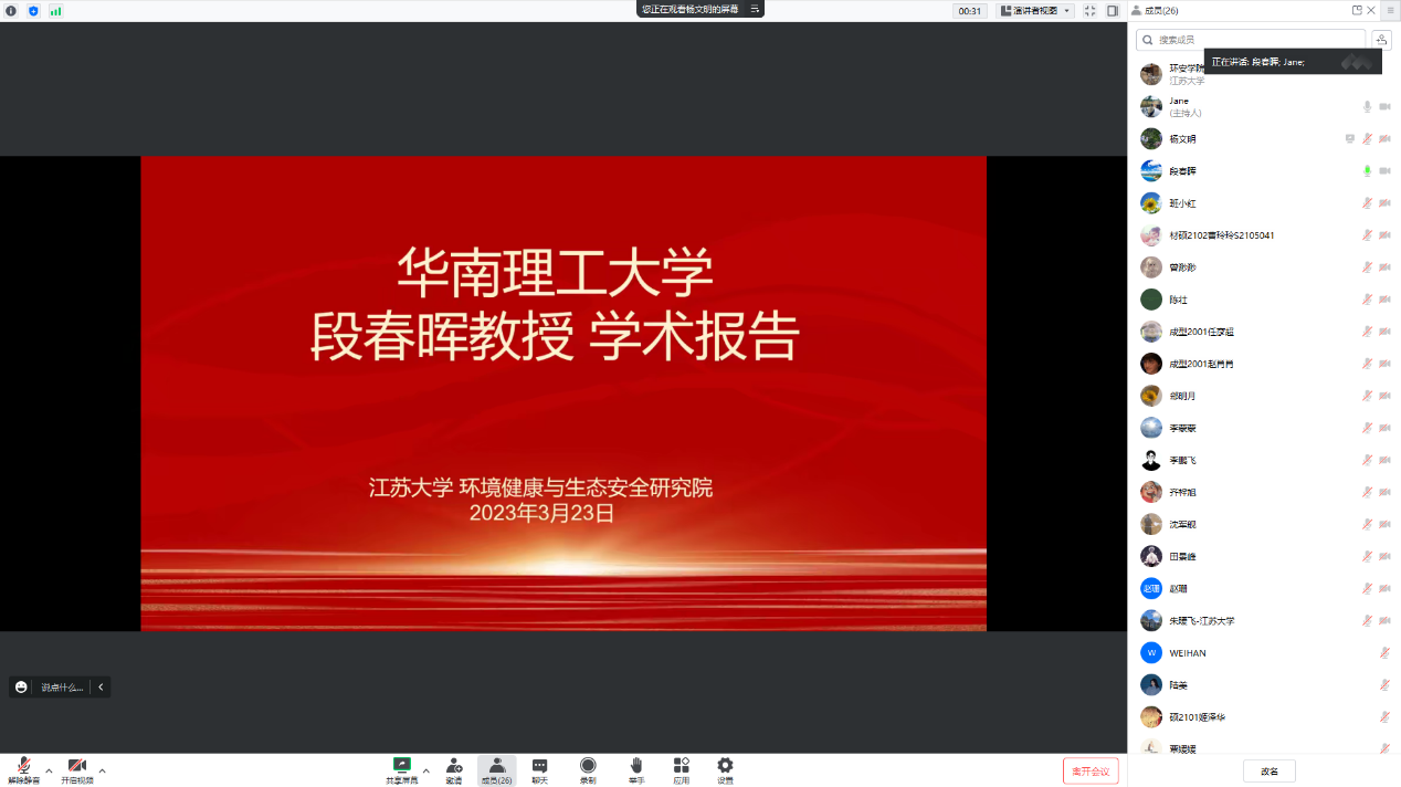 3月23日上午,华南理工大学段春晖教授应环境健康与生态安全研究院邀请,为威尼斯人app