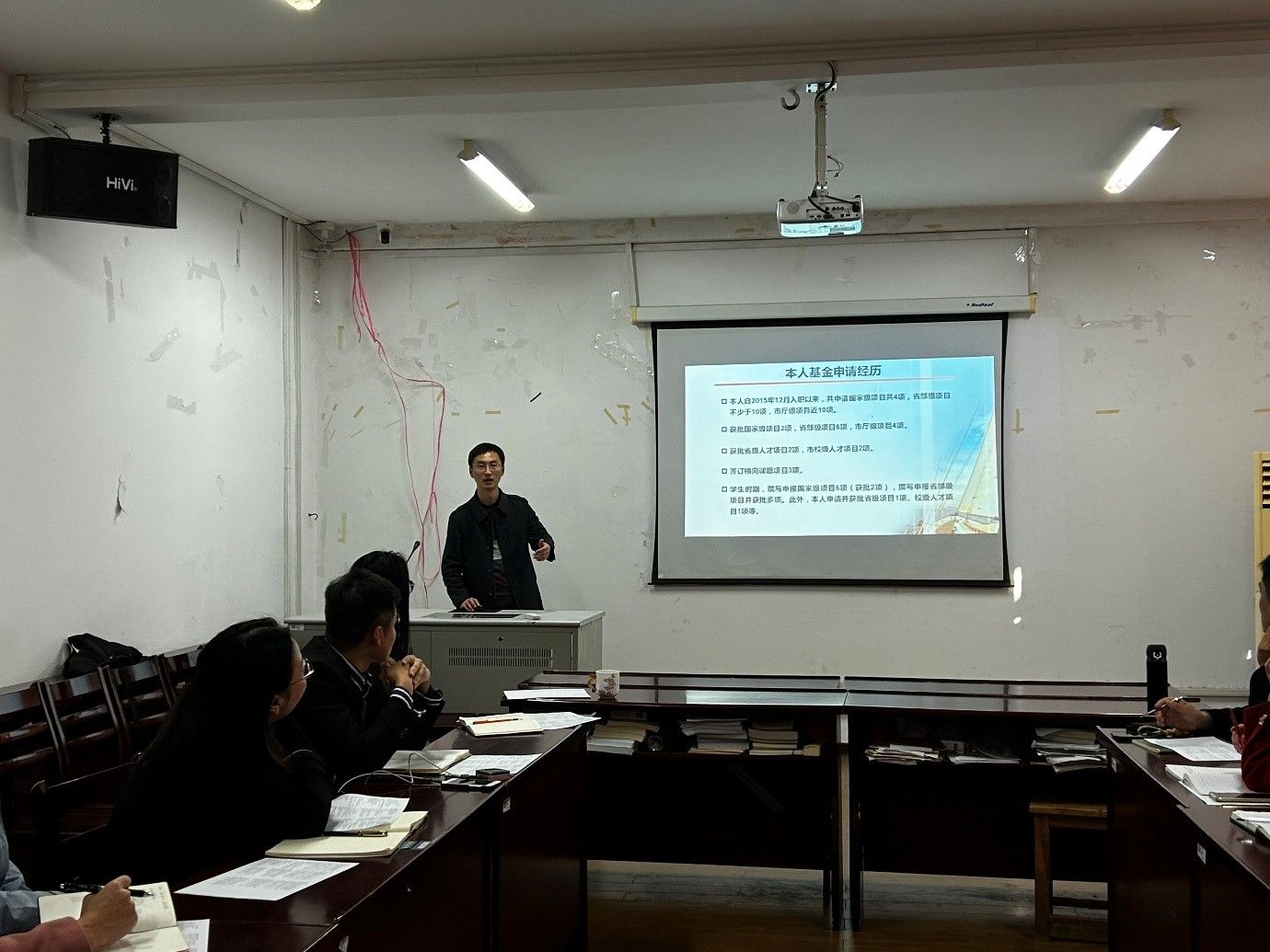 青年教师申报国家自然科学基金的大致情况和三位经验分享老师的国家自自然科学基金立项资助情况。接着戴志聪、逯子扬、陈明毅三位老师分别介绍了个人申报国家基金的经验和心得。戴志聪老师系统总结了基金撰写过程关于如何选题、如何凝练关键科学问题以及基金每个部分撰写的关键要点、注意事项等,并贴心地为各位青年教师印发了学习讲义;逯子扬老师从自身基金申请经历、申请经验分享两个方面着重介绍了基金撰写与提交过程中需重点关注的问题,同时,逯老师还介绍了基金撰写中关于科研绘图的经验,建议撰写时图文并茂;最后,陈明毅着重从如何衡量基金撰写过程中基础研究和应用研究关系方面进行了详细阐述。三位老师在分享过程中均提出在基金撰写过程中要对写作内容反复推敲、不断修改,多与前辈、同行进行交流、探讨,认真、逐步地完善基金申报工作。