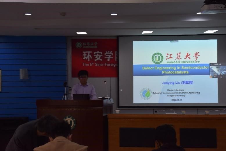 的投稿近110份,通过专家评审,选出了13个口头报告和16个学术墙报。首先,刘军营教授做了“Defect Engineering in Semiconductor Photocatalysts”的精彩特邀报告,随后,13名中外研究生/博士后分享了自己课题的最新研究进展,内容涉及环境健康与污染、 环境生态、生物质资源利用、水处理、以及“双碳”等各个环境细分领域。