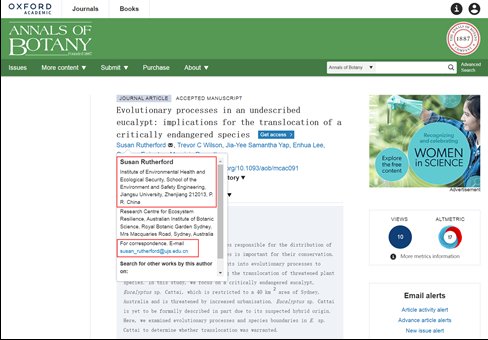 为第一单位)关于桉树新物种的研究成果被国际著名植物学期刊《Annals of Botany》在线发表。Susan Rutherford研究员是威尼斯人app