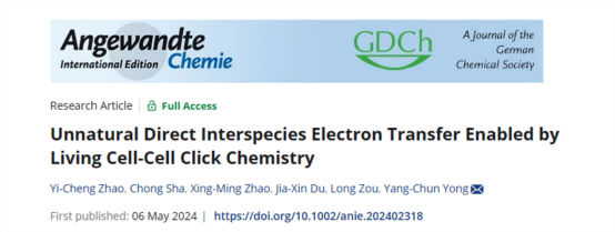 师生在《德国应用化学》(Angewandte Chemie International Edition (IF:16.6))杂志上发表题为“Unnatural Direct Interspecies Electron Transfer Enabled by Living Cell-Cell Click Chemistry”的最新研究成果。威尼斯人app