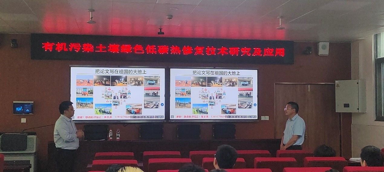 生态环境研究中心研究员焦文涛担任主讲嘉宾,围绕“有机污染土壤绿色低碳热修复技术研究及应用”展开专题报告,吸引了众多师生参与。报告会由副院长赵如金主持。