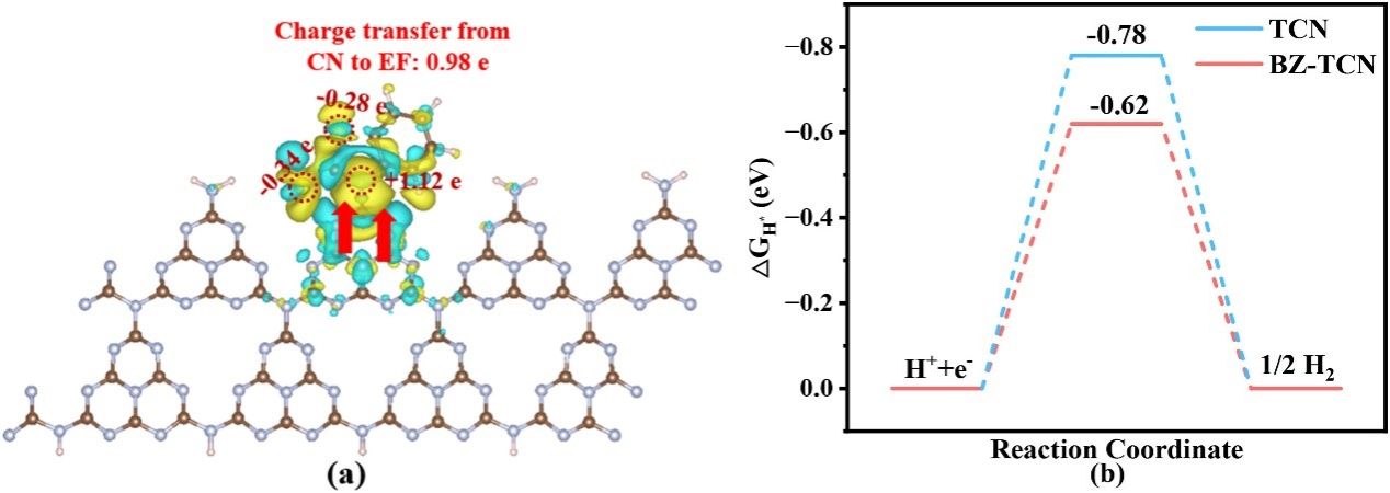 图3 BZ-TCN的差分电荷密度图以及氢吸附能力图