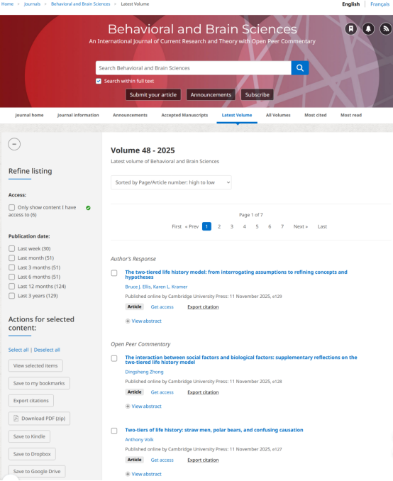 钟定胜老师受邀在《Behavioral and Brain Sciences》上发表了一篇论文,对该刊的一篇目标论文所提出的核心框架进行了实质性的完善与拓展。该目标论文通过提出2层生活史模型,整合了能量学和发展假说的洞见,为理解环境条件如何影响人类发展提供了一个比较全面的解释框架。然而,钟定胜老师在其受邀发表的论文中指出:尽管该2层模型在整合生物学视角方面取得了显著进展,但对文化规范、宗教信仰等社会因素如何与生物学因素互动影响生活史策略的讨论仍显不足。这一局限性使得模型在解释某些历史人口现象时力不从心。