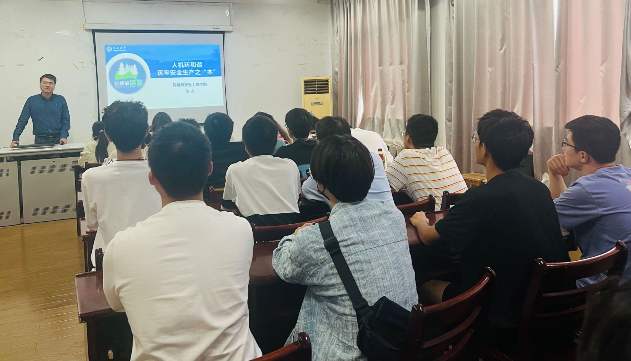 承办的“五棵松讲坛”在主楼2311顺利举办。本期讲坛的主题是“人机环和谐 筑牢安全生产之ʻ本ʼ”,由安全工程系主任朱方老师主讲。校内感兴趣的师生参加了本次讲座。