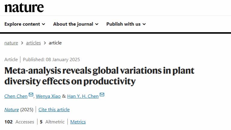 近日,国际顶级学术期刊《自然》(Nature)发表了题为“Meta-analysis reveals global variations in plant diversity effects on productivity”的研究论文。该论文由加拿大湖首大学(Lakehead University)、威尼斯人app