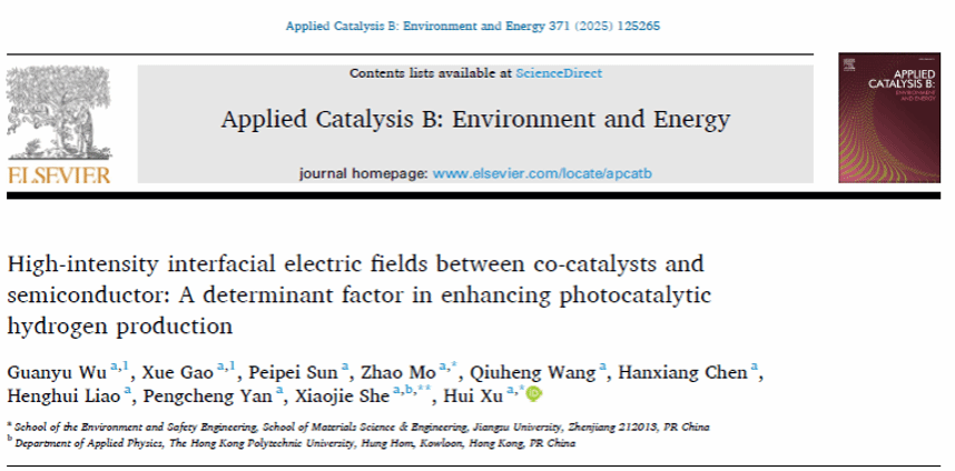 最新研究论文“High-intensity interfacial electric fields between co-catalysts and semiconductor: A determinant factor in enhancing photocatalytic hydrogen production”在《Applied Catalysis B: Environment and Energy》(SCI一区,IF = 22.1)上在线发表。威尼斯人app
